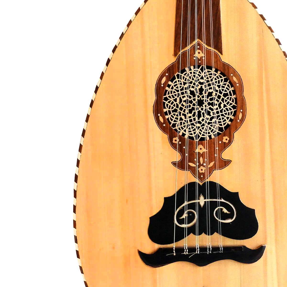 弦が6コース張ってあります。低い方からFADGCFです。(エジプトの標準的なチューニング) 1コース目が空いていますが、そこにも弦を張ることができます。※ウードは同じように見えて、それぞれかなり音色が違います。