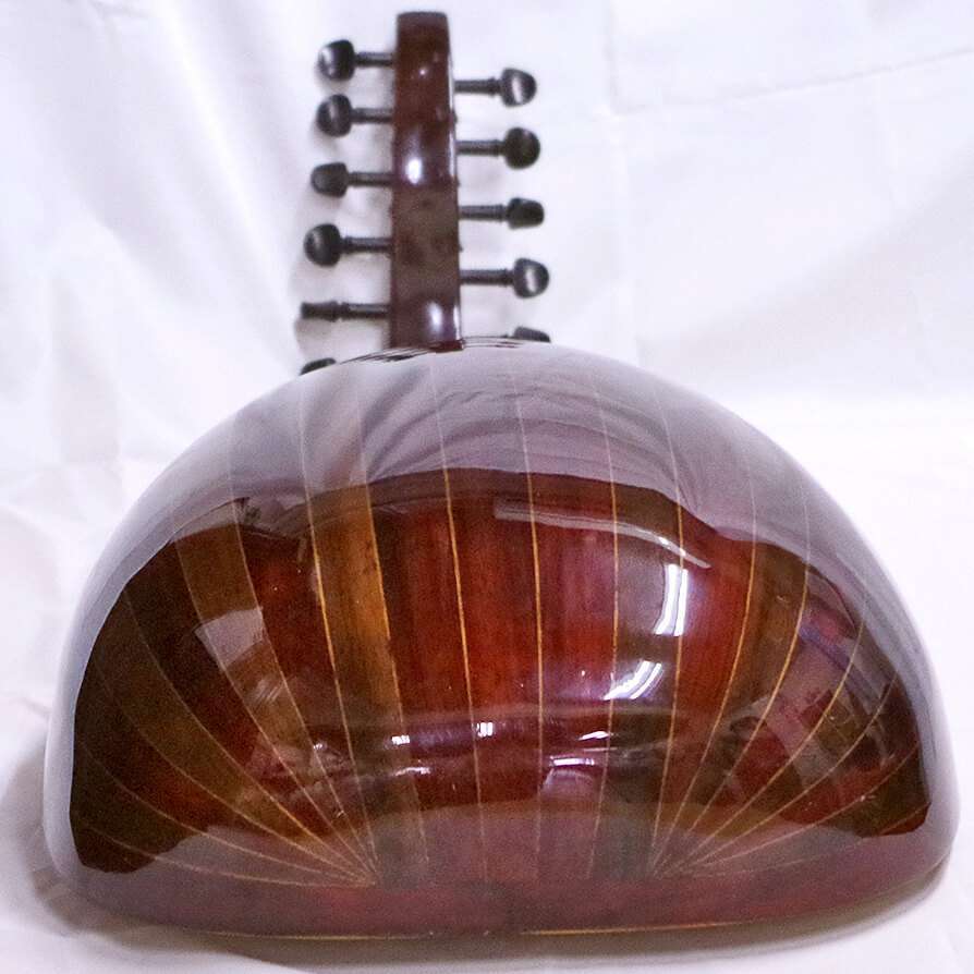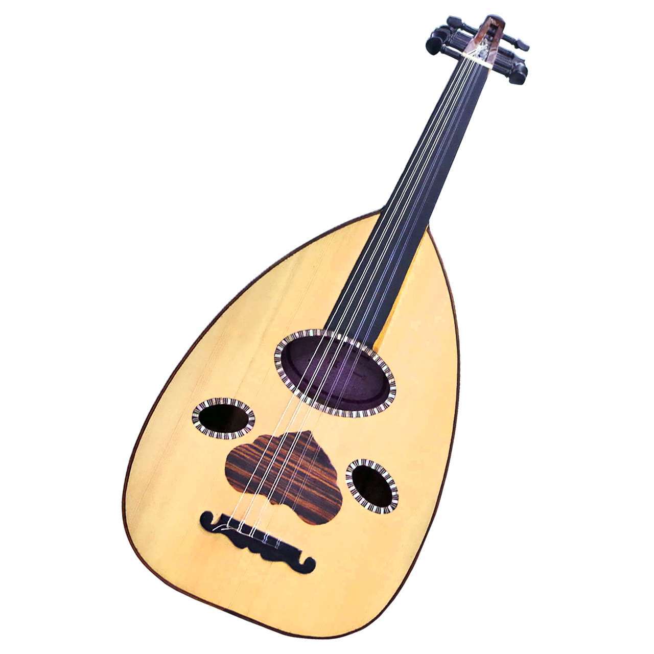 弦が5コース張ってあります。低い方からFADGCFです。(エジプトの標準的なチューニング) 1コースが空いていますので、もう1コース加える事が出来ます。※ウードは同じように見えて、それぞれかなり音色が違います。