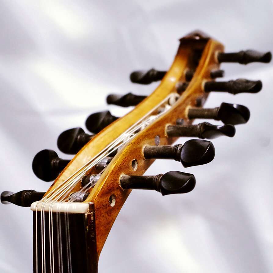 弦が5コース張ってあります。低い方からFADGCFです。(エジプトの標準的なチューニング)1コースが空いていますので、もう1コース加える事が出来ます ※ウードは同じように見えて、それぞれかなり音色が違います。