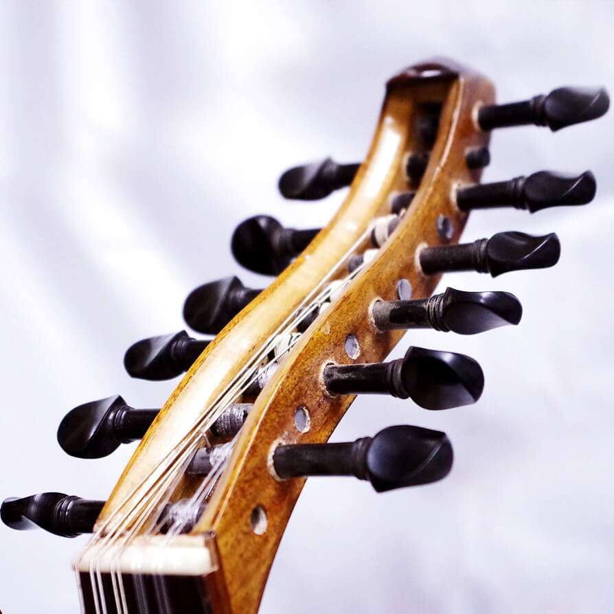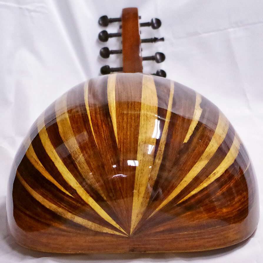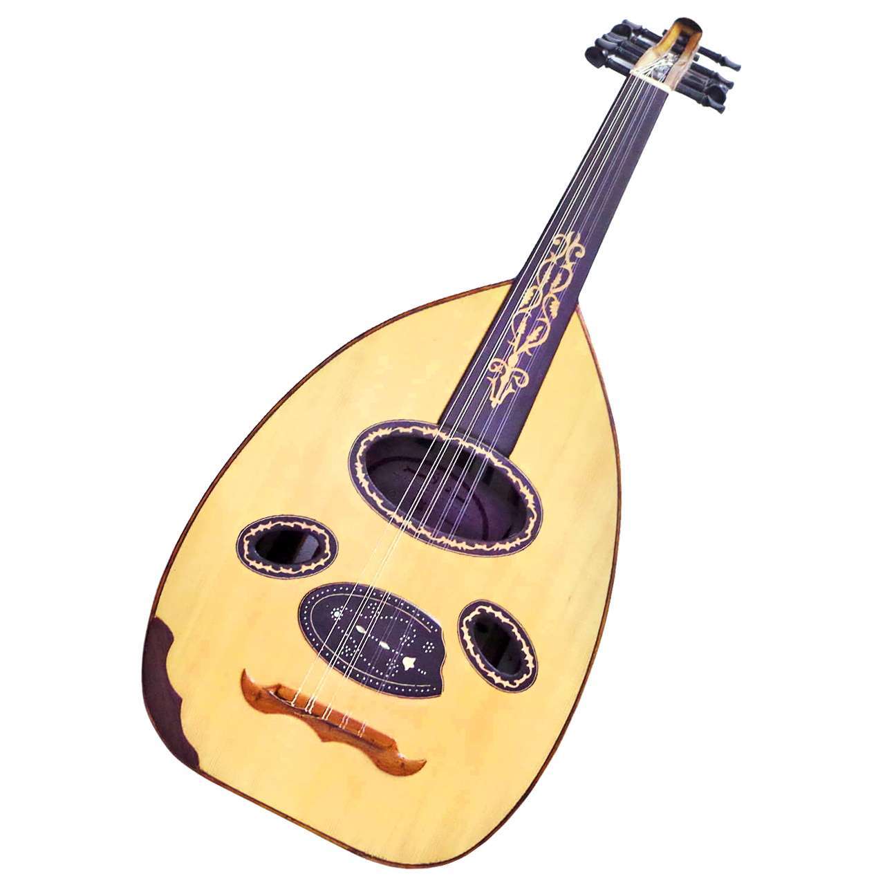 弦が5コース張ってあります。低い方からFADGCFです。(エジプトの標準的なチューニング) 1コースが空いていますので、もう1コース加える事が出来ます。※ウードは同じように見えて、それぞれかなり音色が違います。